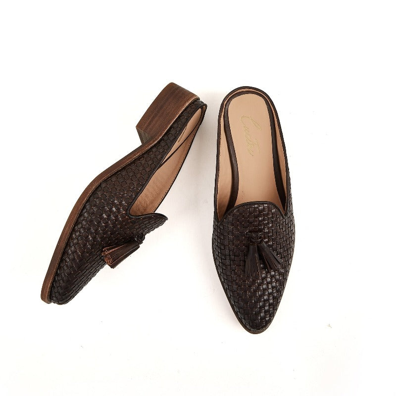 Pamela Woven Tassel Mule in Cow Leather