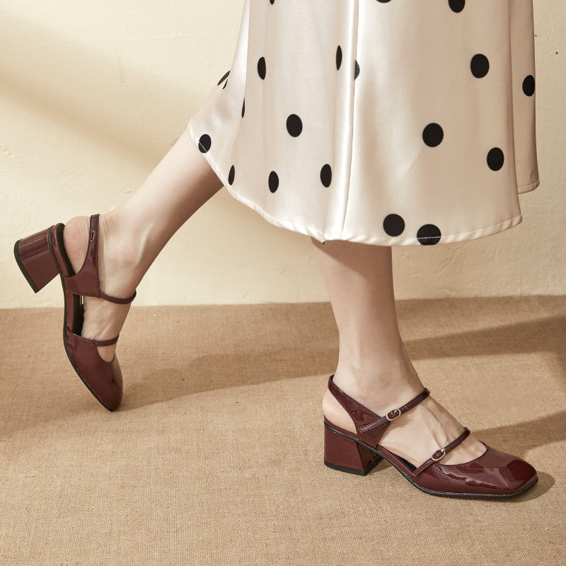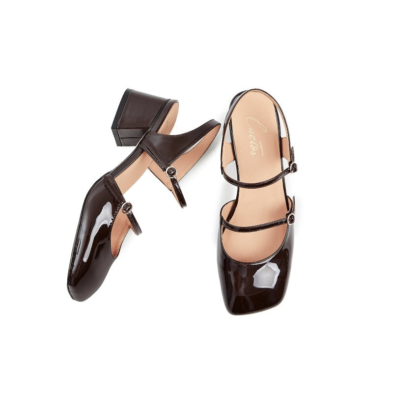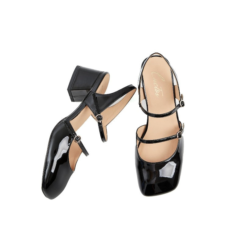 Camilla Mary Jane Shoes Double Strap Square Toe Heels