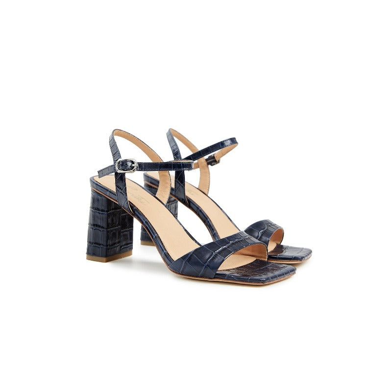 Natalie Chunky Heel Sandal Ankle Strap in Baby Calf