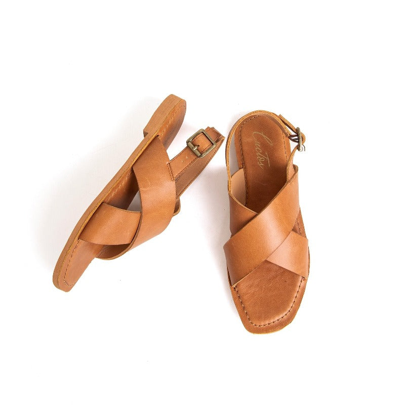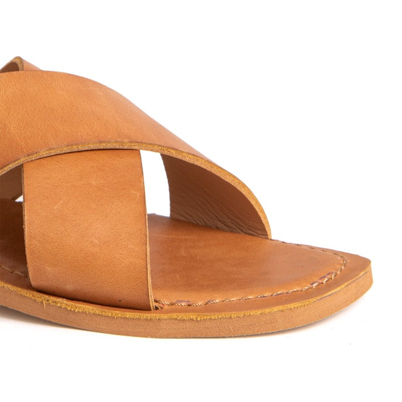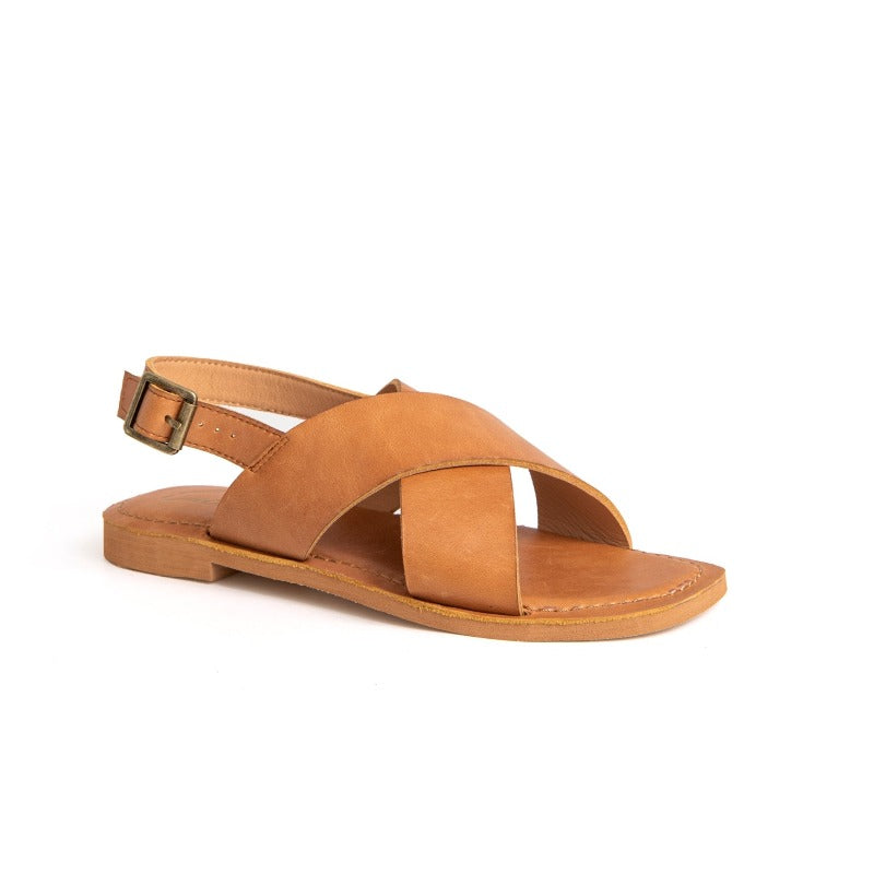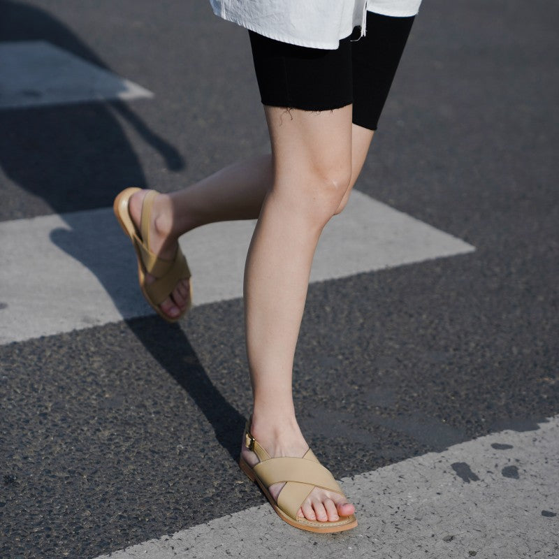 Samantha Criss-Cross Flat Sandal in Cow Leather
